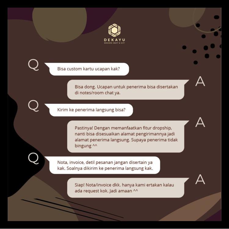 Untuk kado nikahan, ulang tahun, wisuda, bingkisan tanda terimakasih atau malah dipakai souvenir perusahaan. Pembelian satuan sampai banyakan? Bisa!