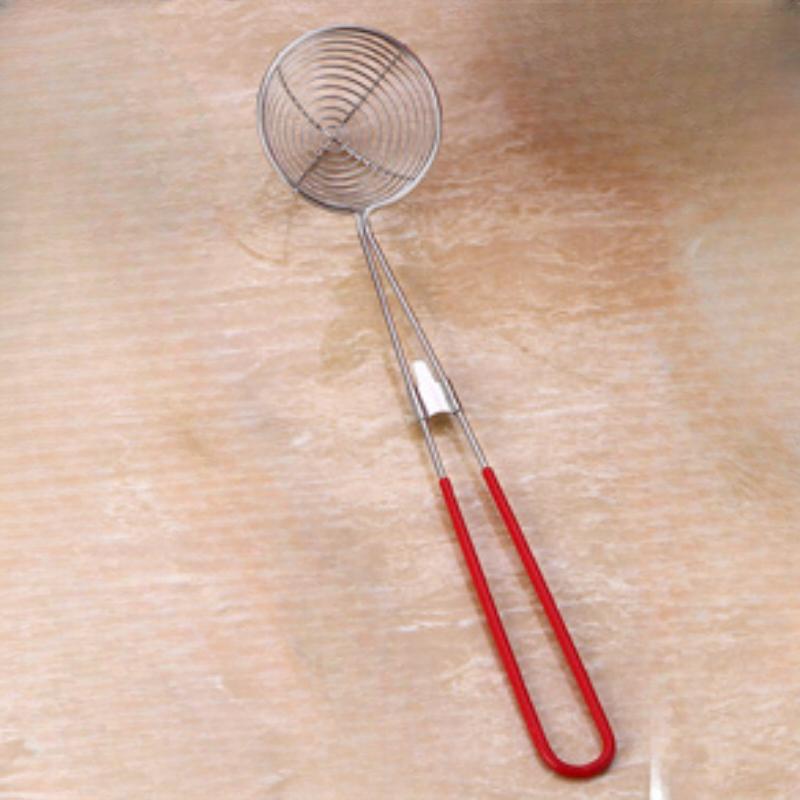 HANYANG Новая маленькая леска из нержавеющей стали с резиновой ручкой, сетка для утечки, ложка для горячего горшка, большая ложка для лапши с утечкой red(27.5cmx6.3cm)