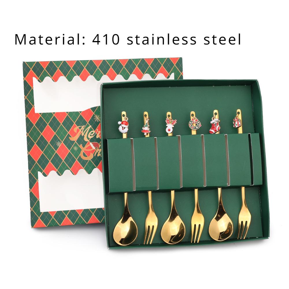 HANYANG Рождественская десертная ложка и вилка из нержавеющей стали, подарочный набор, фруктовая вилка, кофейная ложка для Деда Мороза, бытовая посуда для отеля