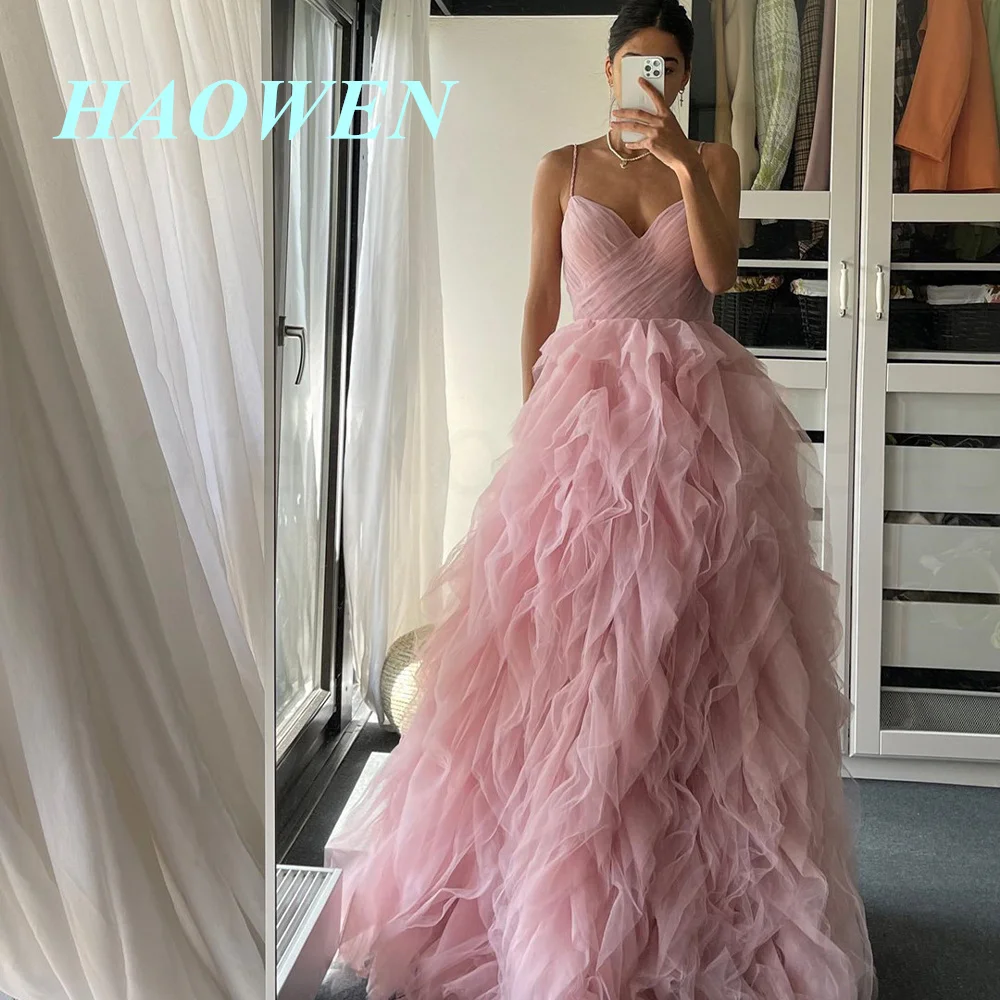 HAOWEN H733 Тюлевое платье принцессы с рюшами для выпускного вечера Пышное Платье макси на тонких бретелях для помолвки Вечерние платья на вечер...
