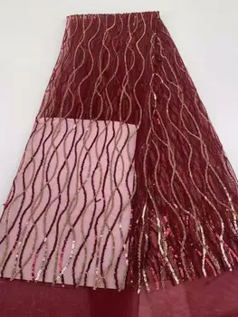 Nigerian wine red sequins Lace Fabric 2019 High Quality African 3D Net Lace Fabric Wedding French Tulle Lace Material For Dress