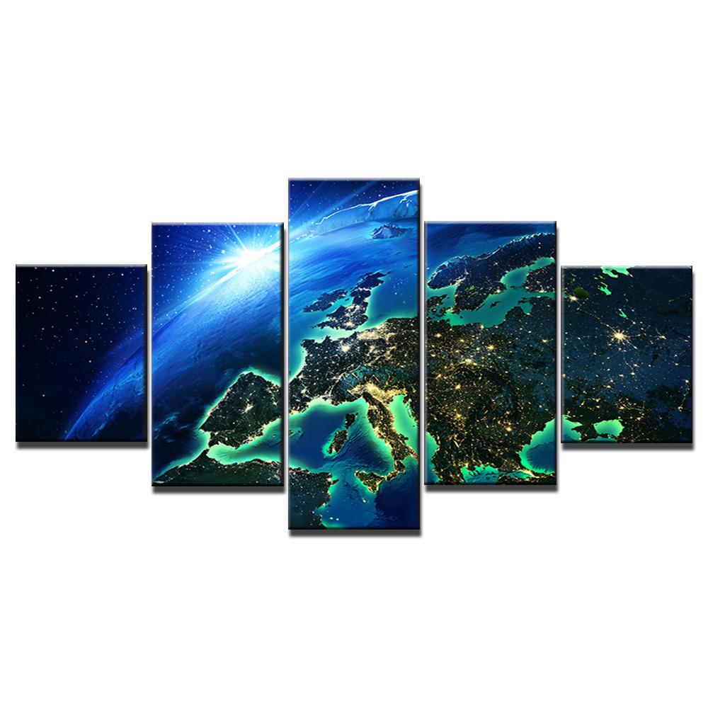 HD Печатный 5 частей Холст Искусство Голубая Земля Горизонт Вселенная Живопись Плакат и отпечатки Настенные рисунки для гостиной NY-7266C