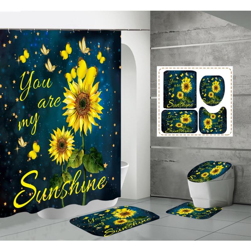 HD занавеска для душа, комплект из четырех предметов, подсолнух, водонепроницаемая перегородка без перфорации, занавеска от дождя для отеля