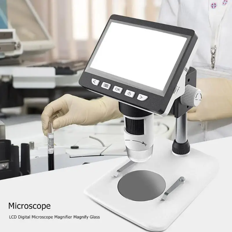 HD Magnify 1080P Desktop LCD Digital Microscope Magnifier Glass Soldering Electronic Microscope laboratory with Brightness 8 LED