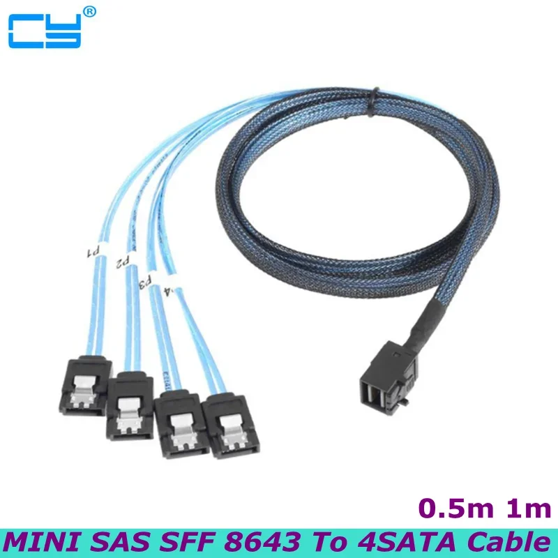HD Mini SAS SFF-8643 to SATA Cable, SFF-8643 Host to 4X SATA Target Cable Compatible with Raid Controller Hard Drive Forward