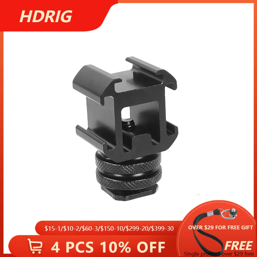 HDRiG 3 Cold Shoe Mount Adapter Triple Extend Holder Metal Base For Microphone Monitor LED Video Light Camera Accessory Mounting