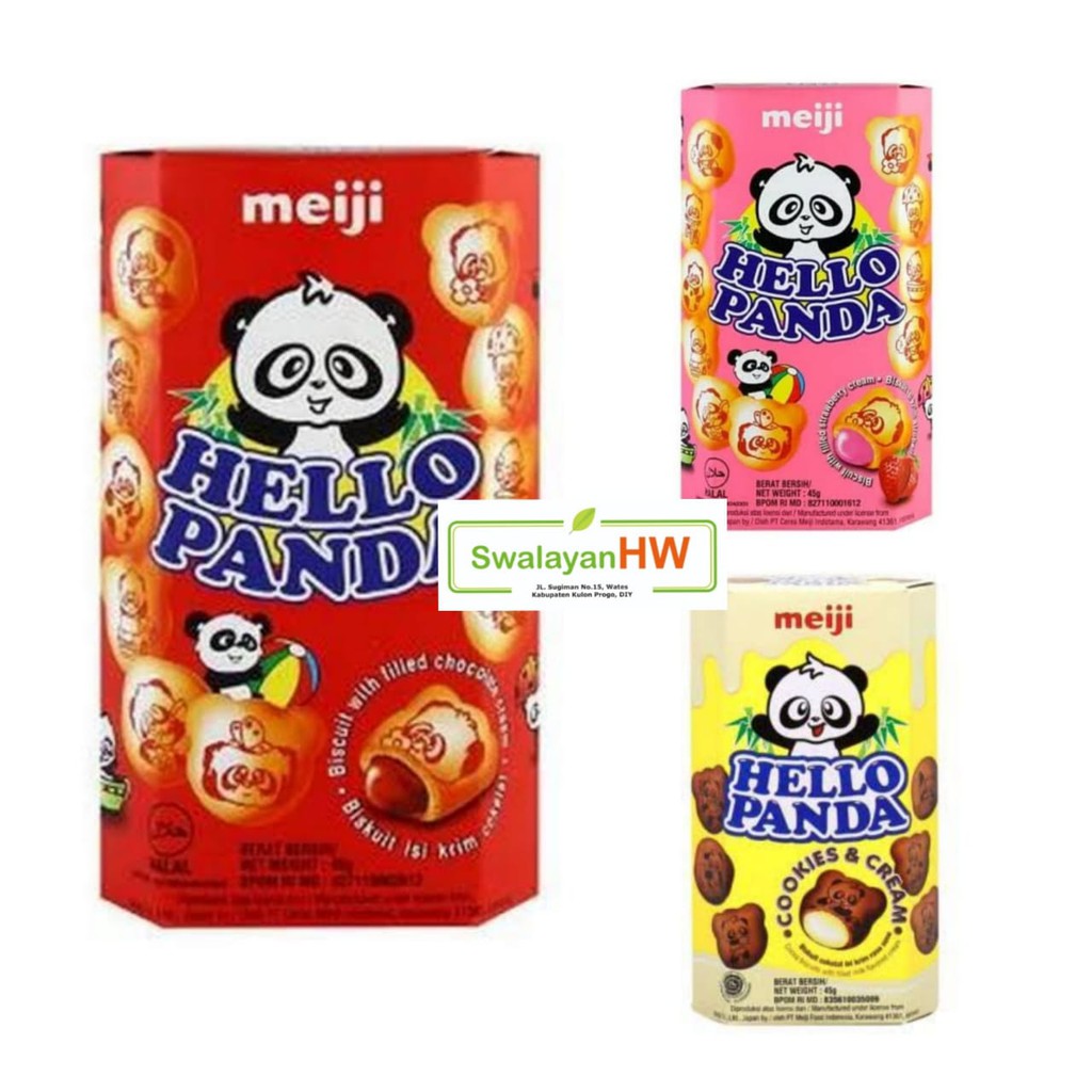 Hello Panda 45gr merupakan biskuit dengan isi krim rasa Coklat, Strawberry, Cookies Cream yang renyah dan nikmat, sehingga cocok untuk dinikmati setiap hari saat santai Anda bersama keluarga.