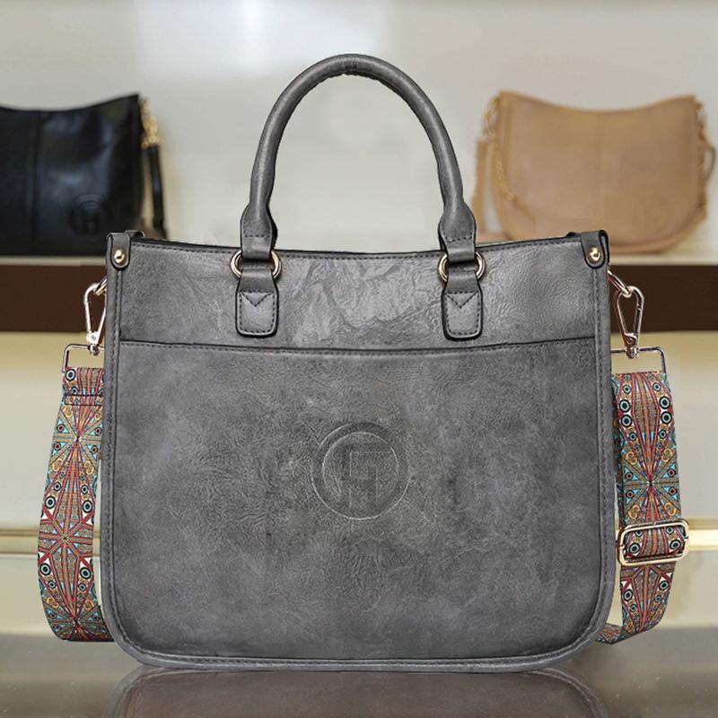 HF Ретро женская сумка через плечо 2024 - Большая вместимость, Модная, Дизайн высокого класса на одно плечо. серый
