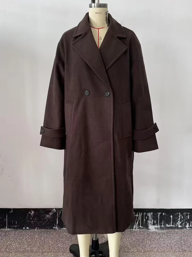 HH женское осенне-зимнее новое модное шерстяное длинное пальто с лацканами, женское простое темпераментное теплое уличное повседневное пальто