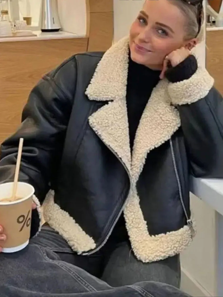 HH 2024, женская зимняя короткая мотоциклетная куртка, цельная меховая куртка в стиле ретро с лацканами и карманами на молнии, женская уличная одежда