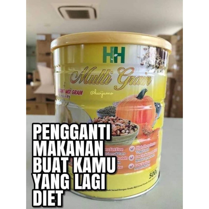 HH multi grain adalah minuman sereal dengan komposisi biji-bijian aneka warna yang tinggi serat,protein dan mineral yang berfungsi untuk membantu menjaga kesehatan saluran cerna anda.