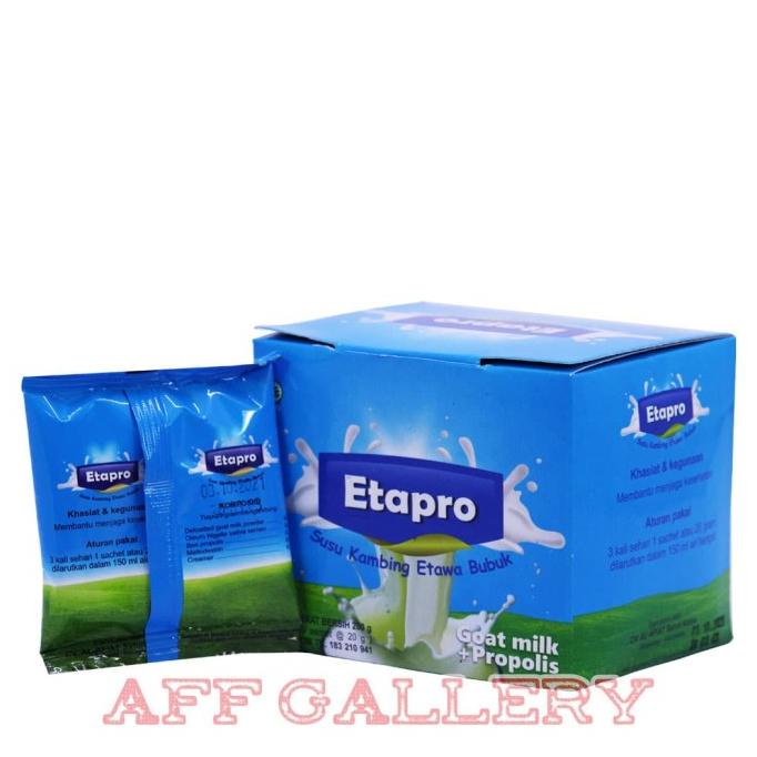 ETAPRO adalah susu kambing etawa bubuk yg ditambah formulasi herbal pilihan seperti habbstussauda dan Propolis , diracik secara khusus sehingga lebih nikmat dan bermanfaat untuk dikonsumsi Anda dan keluarga Anda. b