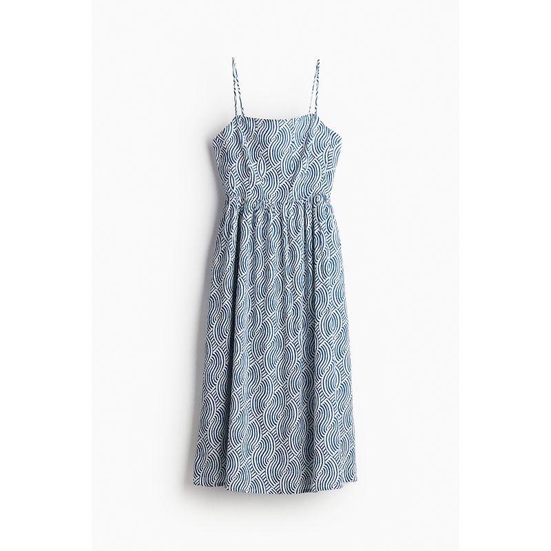 HM Женская одежда Цветочный принт Платье Летний стиль Отпуск Льняная смесь Принт На бретелях Квадратный вырез Приталенный силуэт Юбка 1217048 Blue/Pattern 160/88(S)