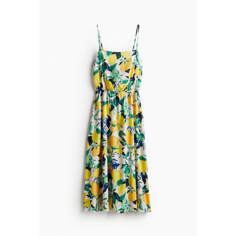 HM Женское Платье Летнее Элегантное Отпускной Стиль Свежее Средней Длины С Растительным Принтом На Бретелях 1225346