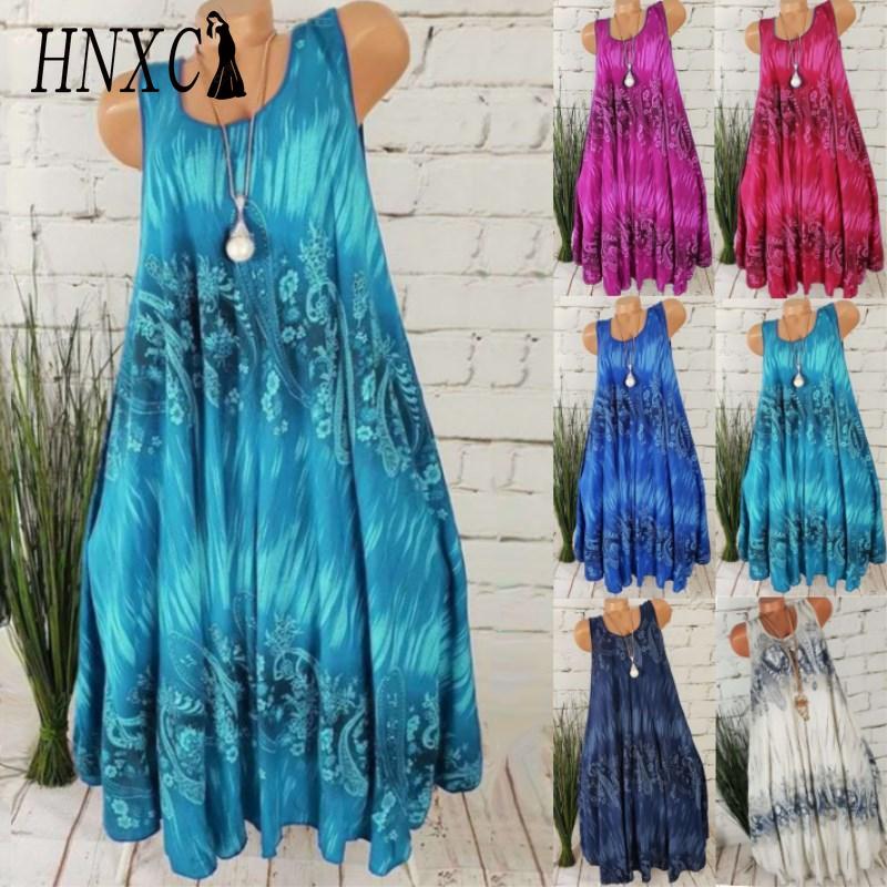 HNXC Женское летнее платье без рукавов с цветочным принтом и круглым вырезом S бежевый