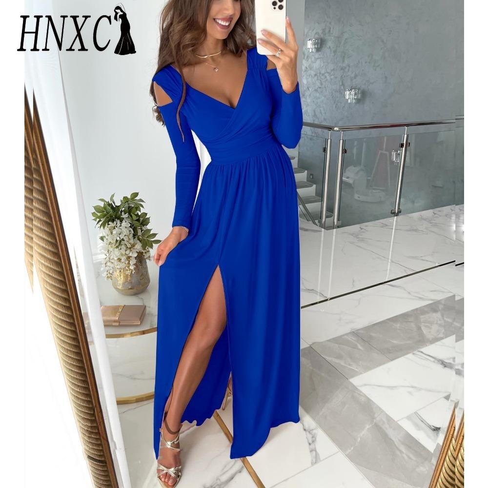 HNXC Макси-платье однотонное большой подол женское элегантное с неровной талией для путешествий XXXL синий