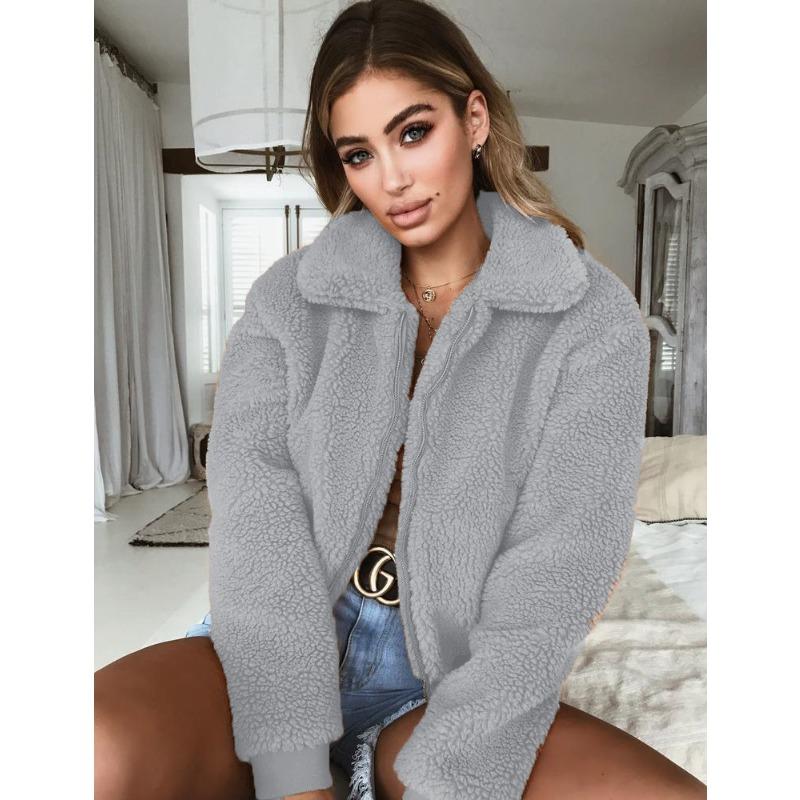 HNXC женские винтажные повседневные однотонные куртки и пальто с воротником-поло на осень-зиму с длинным рукавом и принтом XXL светло-серый