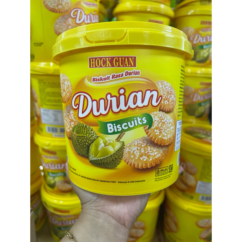 Hock Guan Durian adalah biskuit bercita rasa durian yang lembut dan lezat. Biskuit ini terbuat dari bahan-bahan pilihan yang diproses secara higienis.