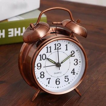 Snooze Function Creative Retro Alarm Clock Twin Bell Alarm Clock With Stereoscopic Dial Backlight Desk Clock Loud Alarm Clock