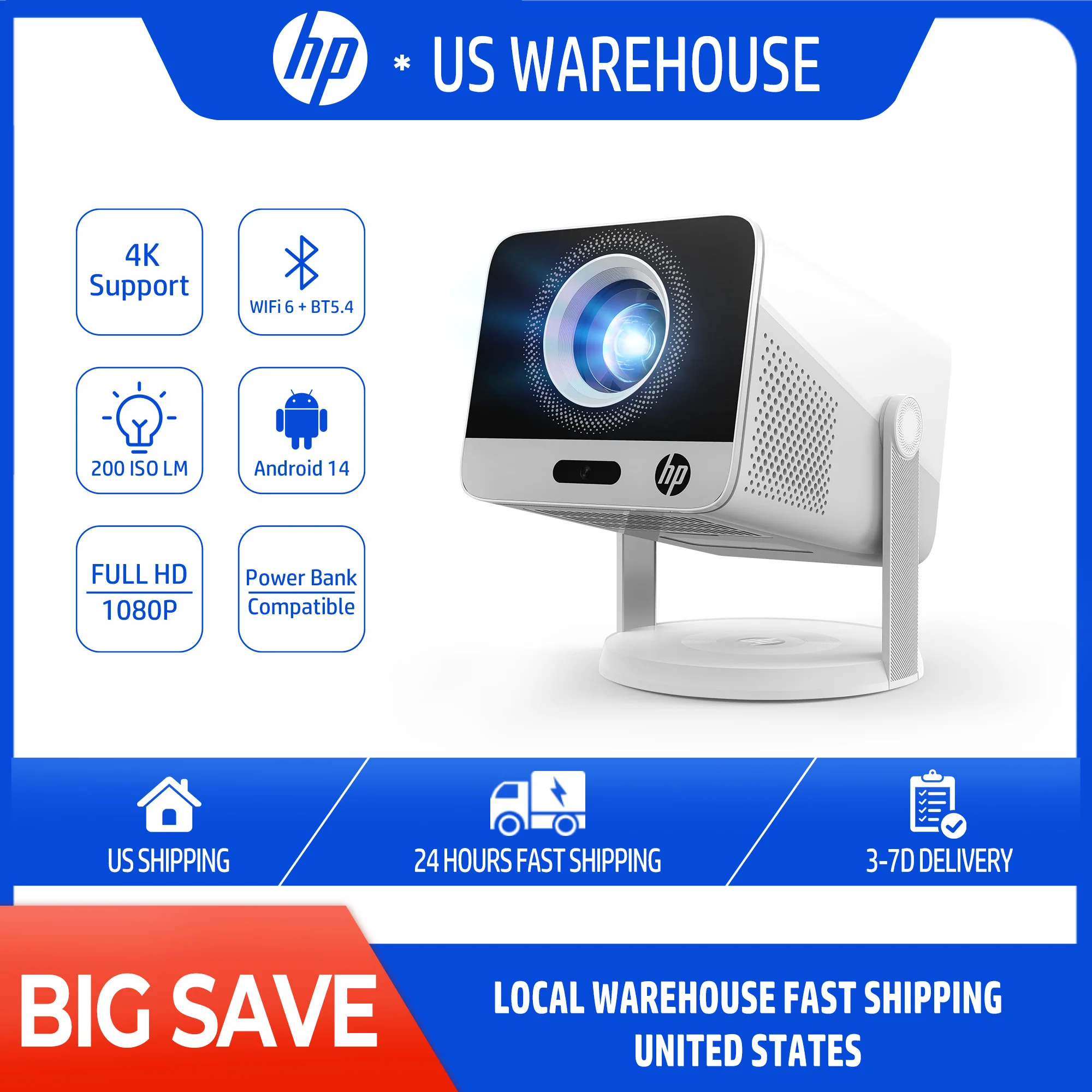 HP Projector MC425 Home Theater HD Projector with Native 1080P Resolution, 4K Video Decoding, Android OS, Wi-Fi, Bluetooth,