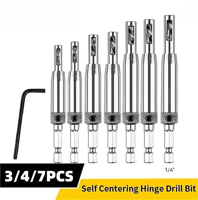 HSS самоцентрирующееся сверло для петель, дверная петля для шкафа, резак для определения отверстий, деревообрабатывающий инструмент, 3/4/7/8 шт., центральное сверло