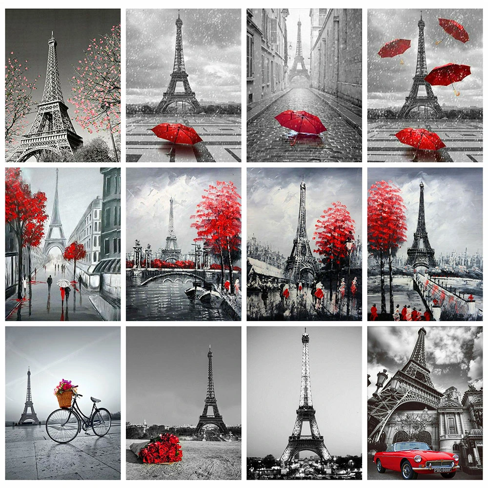 HUACAN 5d алмазная картина полная дрель квадратная черная красная Эйфелева башня Стразы Алмазная вышивка продажа пейзаж ремесло набор