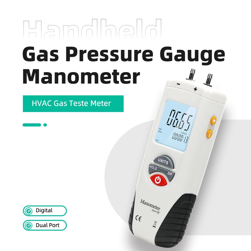 HVAC Gas Test Meter Handheld Digital Manometer Gas Pressure Gauge Dual Port Data Hold Air Pressure Tool - HVAC Service Gauge