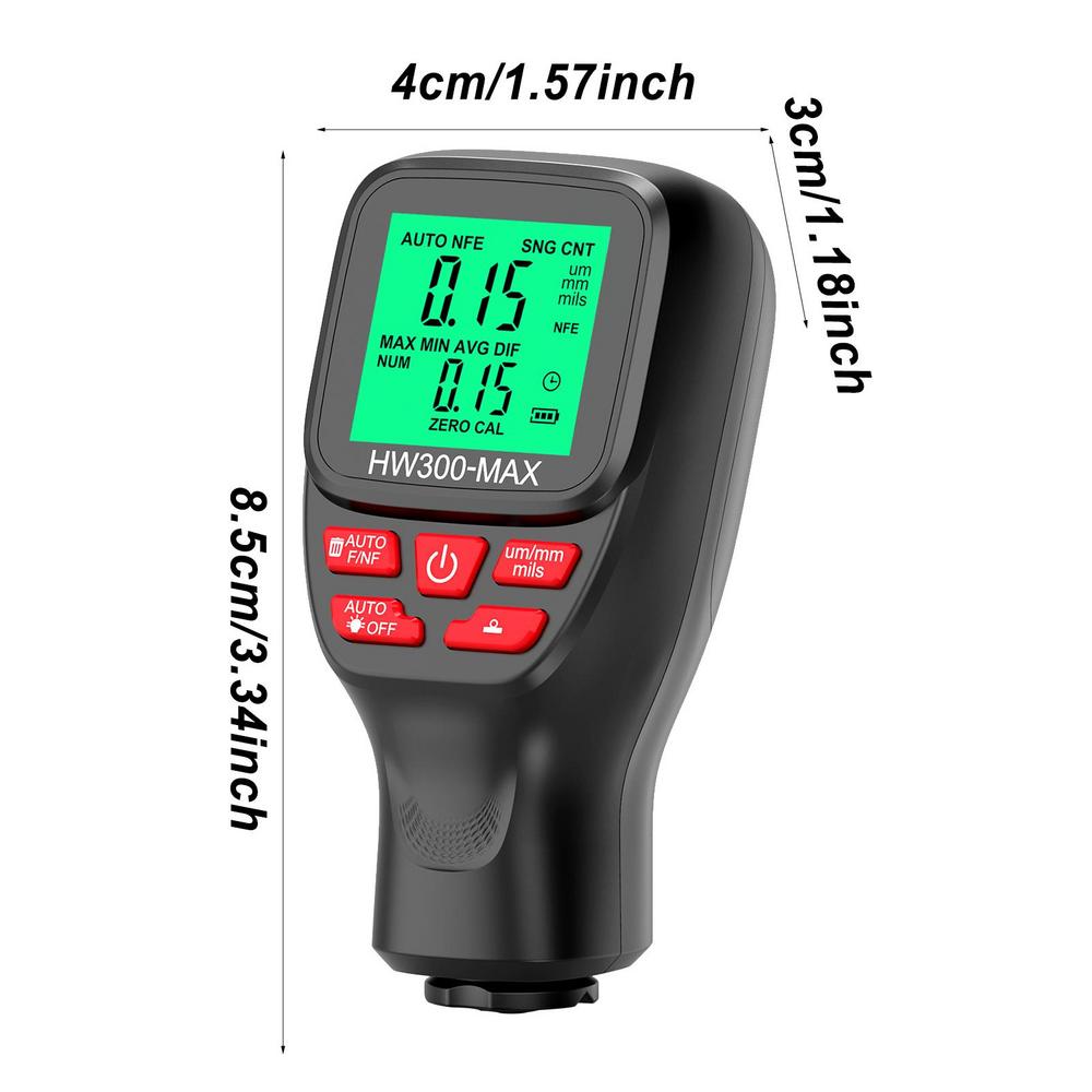 HW300-Max автоматический толщиномер лакокрасочного покрытия автомобиля 0-2000UM FE/NFE тестер толщины покрытия ручной инструмент для покраски автомобилей измеритель чёрный