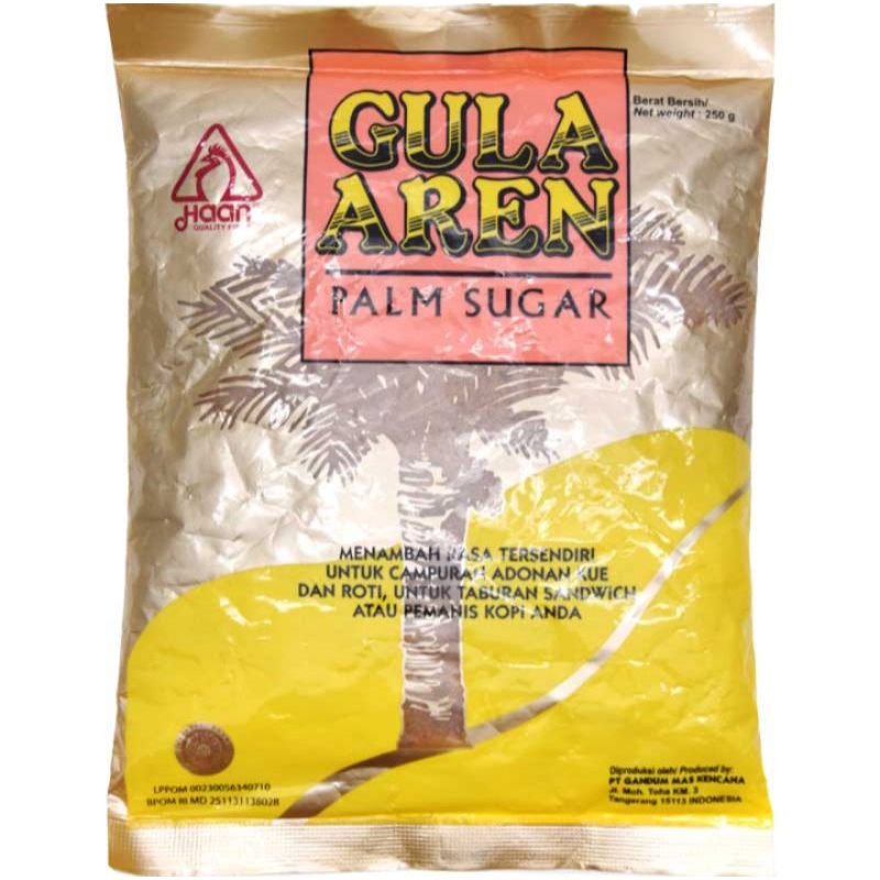 Haan Gula Aren 250 g untuk menambah rasa tersendiri pada campuran adonan kue dan roti buatan anda. Bisa juga dijadikan taburan pada sandwich atau sebagai pemanis kopi anda. Terbuat dari gula aren 100%.