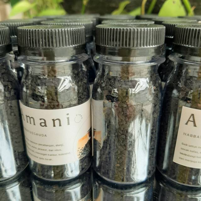 Biji jintan hitam asli utk alergi, sesak napas, anti bakteri, antivirus, mencegah kanker, asma, kolesterol, gula darah, dll. Berat kurang lebih 50 Gram, praktis ekonomis, mudah dibawa, bersih, higienis juga halal.