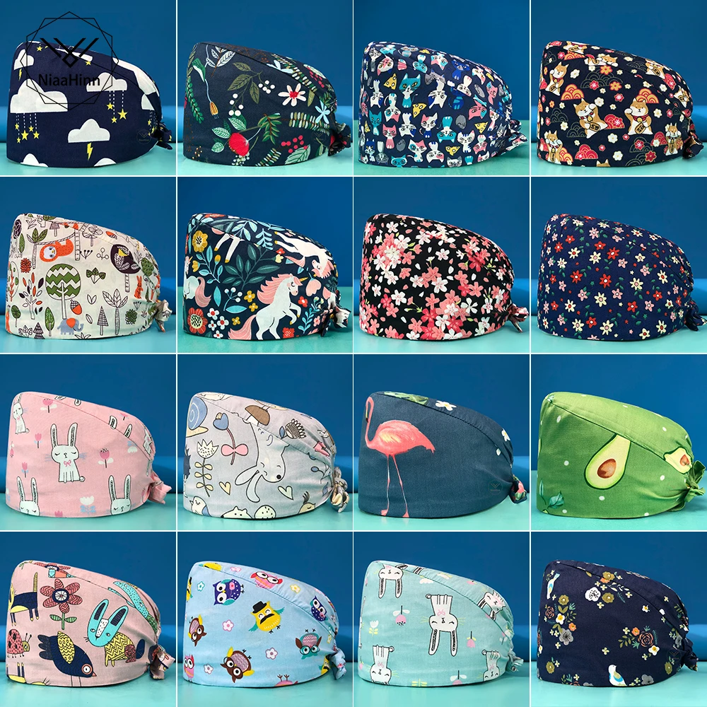 Мультяшная поглощающая пот шапка для груминга домашних животных Скраб Женская шапка Стоматологическая больница Рабочая детская Операционная докторская шапка