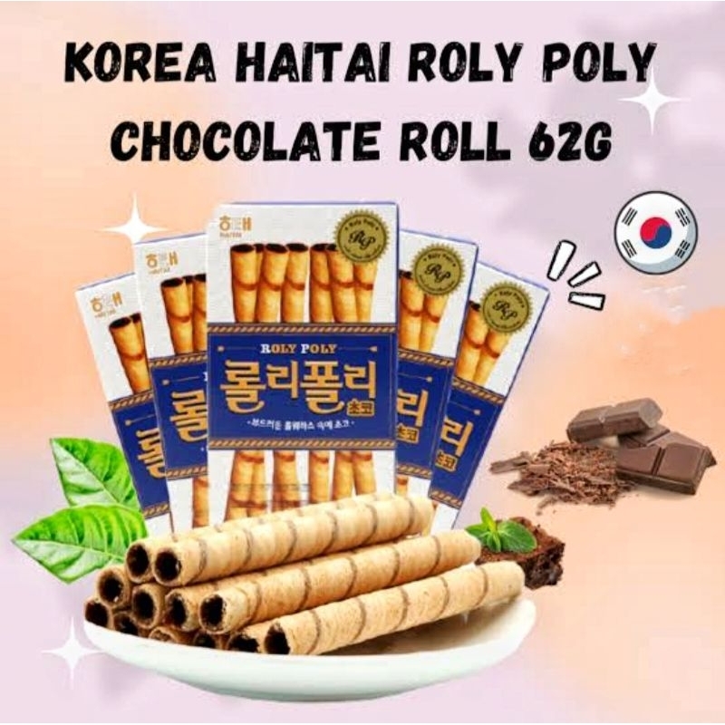 Korea Haitai Roly Poly Chocolate Roll Biscuit 62g Choco Roll