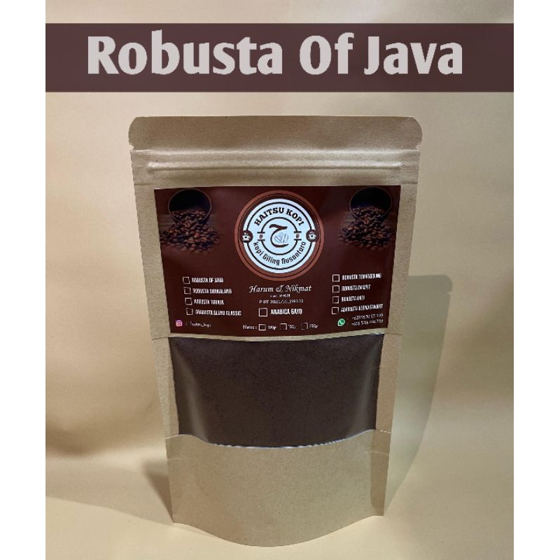 Kopi java Robusta dikemas secara higienis dan diproses roasting dari biji kopi pilihan secara hati hati dan konsisten. Setelah proses roasting pun, kami masih memilah dan memeriksa kembali biji biji yg dihasilkan sehingga hanya kopi terbaiklah yg dinikmati oleh pelanggan.