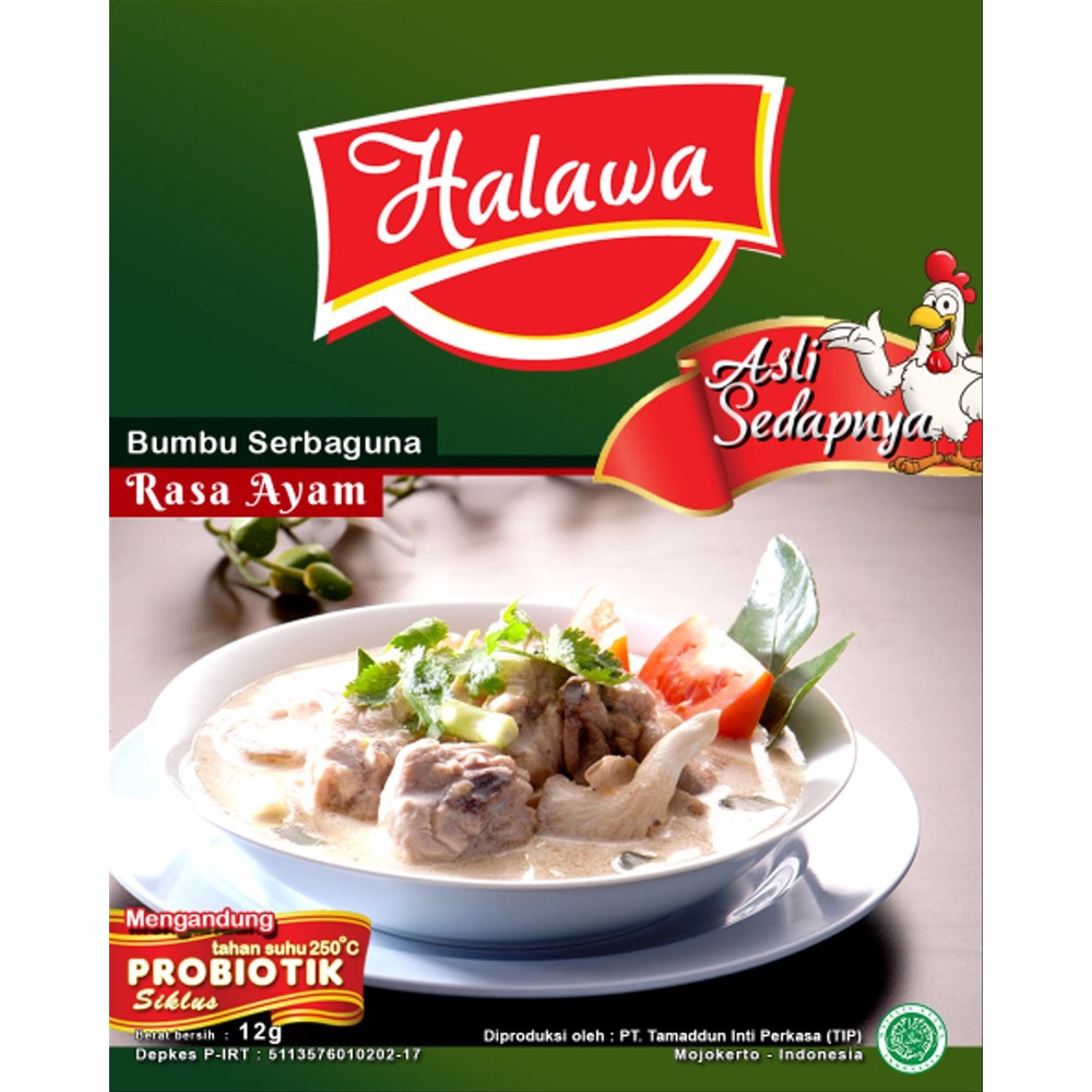 Kaldu Ayam Halawa merupakan produk bumbu alami yang diperkaya denganprobiotik, sehingga akan menambah jumlah bakteri baik dalam tubuh. Pada akhirnya kinerja bakteri baik akan menjadi semakin maksimal sehingga dapat membantu tubuh agar tetap dalam kondisi sehat.