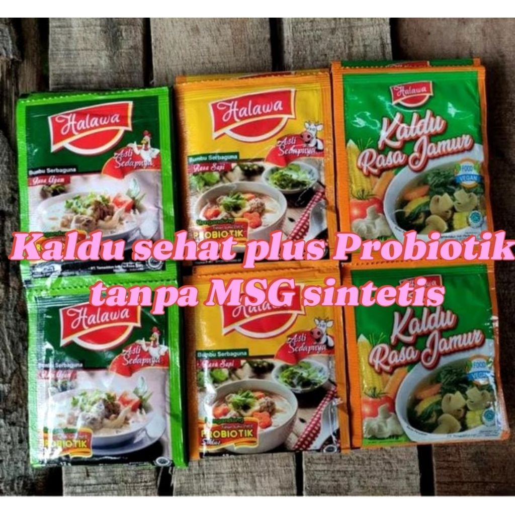 - Keterangan MSG pada kemasan baru di Halawa bukan MSG pada umumnya, melainkan PENGUAT RASA ORGANIK yang di ambil dari sayur-sayuran dan buah-buahan..