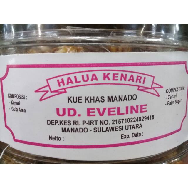 Halua Kenari merupakan kue khas Minahasa-Manado yang sering kali dijadikan oleh-oleh dari Manado. Merupakan perpaduan dari kacang kenari yang gurih dan gula aren yang legit menciptakan kue yang manis, gurih, garing dan tentunya nikmat.