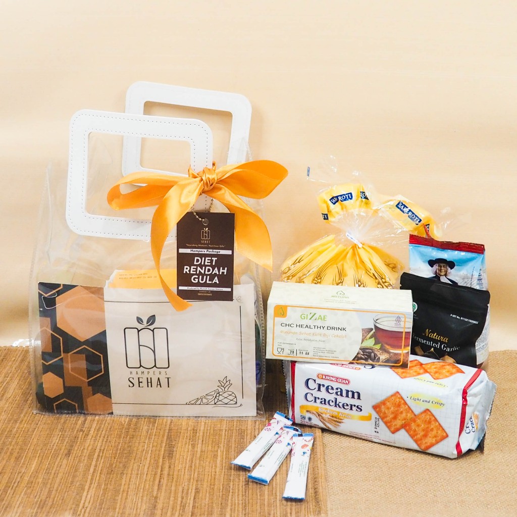Hampers dengan makanan rendah gula untuk seseorang yang mengalami penyakit diabetes melitus (kencing manis) atau pra diabetes melitus.