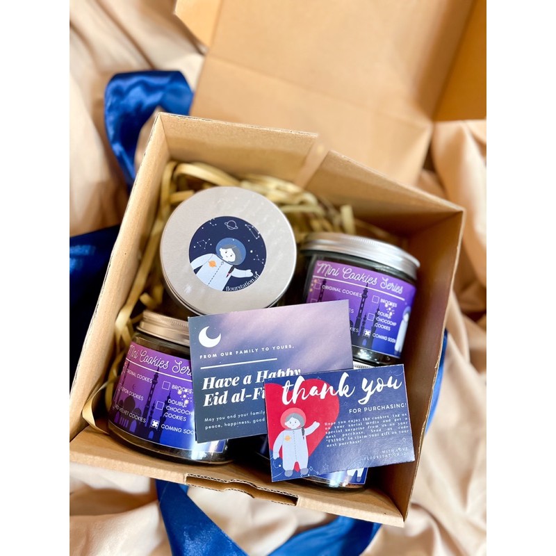 Mini Crunchy Cookies Varian: - Original Cookies: Classic chocochip cookies - Red Velvet Cookies: Red velvet cookies mix with premium quality white chocolate and walnut - Brookies: Perfect combination of brownie and cookies - Double Chocochip Cookies: Chocolate cookies with chocochip Package includes: - Box packaging - 4 Glass Jar - ± 150 gram cookies (20 mini cookies)/ jar - Bubble wrap - Ramadhan Greetings Card - Ribbon (pita) Cocok dijadikan hampers/ kado untuk orang-orang tersayang!
