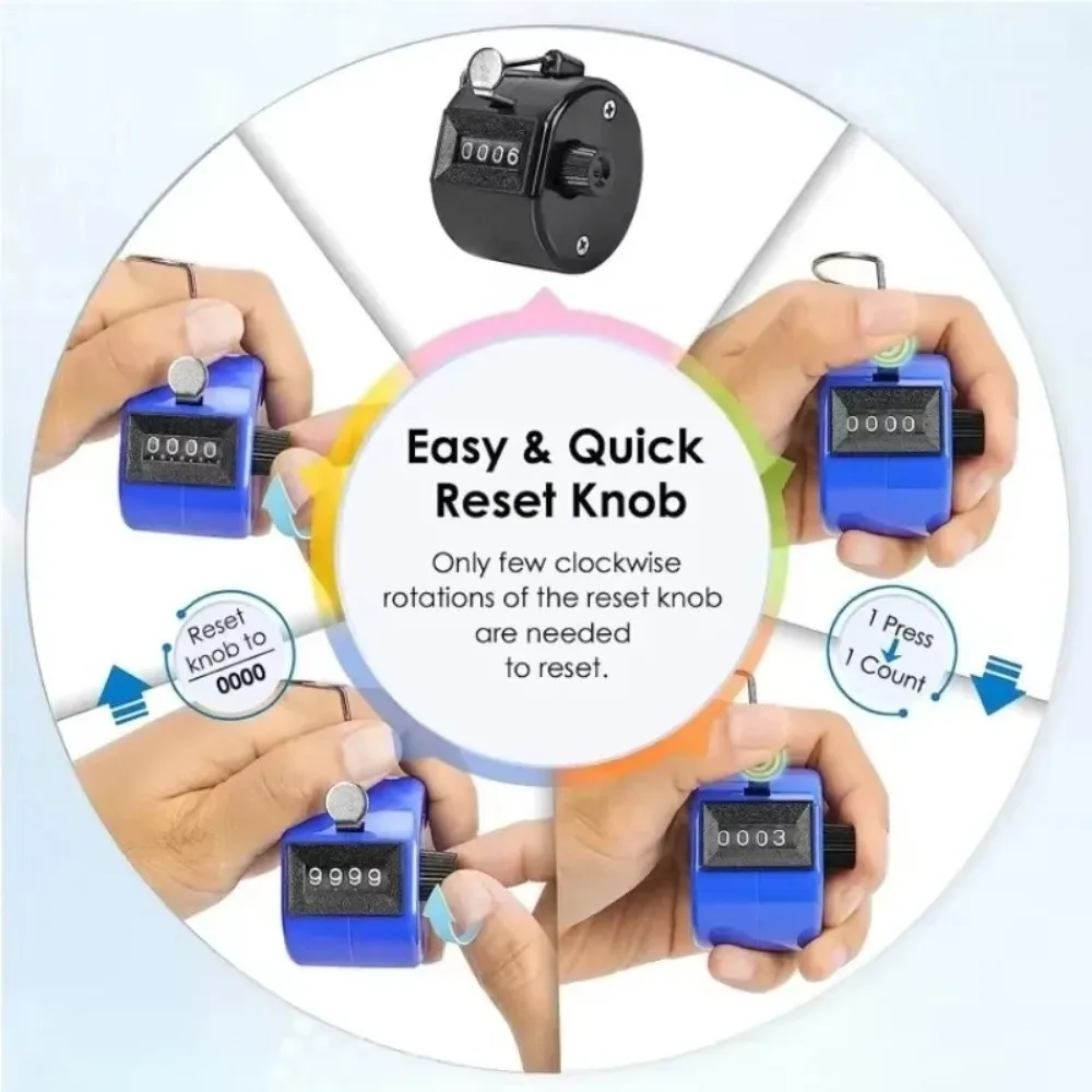 Handheld Hand Tally Counter No Battery Required Metal Mechanical Clicker Counter Mini 4 Digital Manual Counter Soccer Games