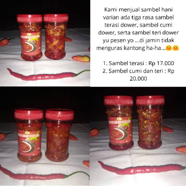 Buat kamu yg doyan makan pedes, kami menyediakan produk sambel nih dengan tiga varian rasa yaitu :