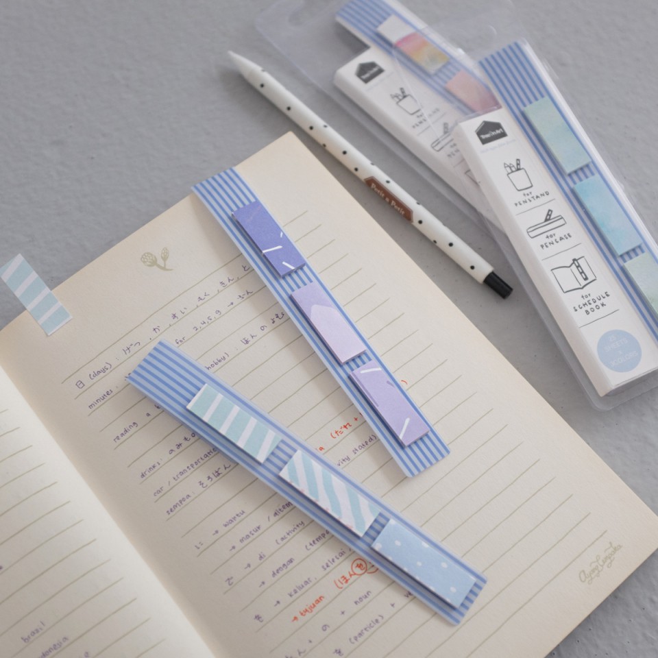 Ukuran kertas post-it: 3.4 x 1.1 cm.