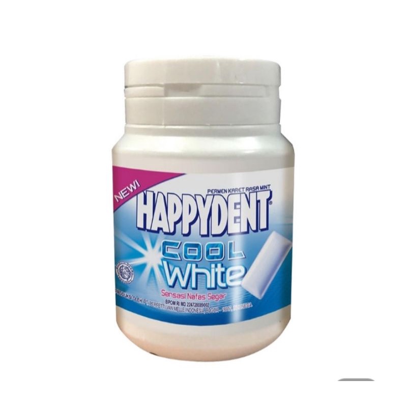HAPPYDENT White Mint Botol 52.8 g merupakan permen karet dengan kandungan bahan istimewa yang mampu membuat gigi putih cemerlang sekaligus memberikan sensasi dingin dan menyegarkan di mulut. Mengandung Baking Soda yang dapat membantu menjaga gigi tetap putih, serta formula long lasting yang memberikan kesegaran lebih lama. Selain itu, permen karet HAPPYDENT White ini dibuat bebas gula sehingga tidak merusak gigi. Rasa mint nya yang segar baik untuk menghilangkan bau mulut dan memberi rasa segar yang nyaman. Datang dalam kemasan botol 52.8 g, membuat permen HAPPYDENT White ini mudah dibawa dan dikonsumsi kapan dan di mana saja. Dapatkan rasa percaya diri dengan gigi putih cemerlang dan nafas selalu segar dari permen karet HAPPYDENT White Mint 52.8 g.