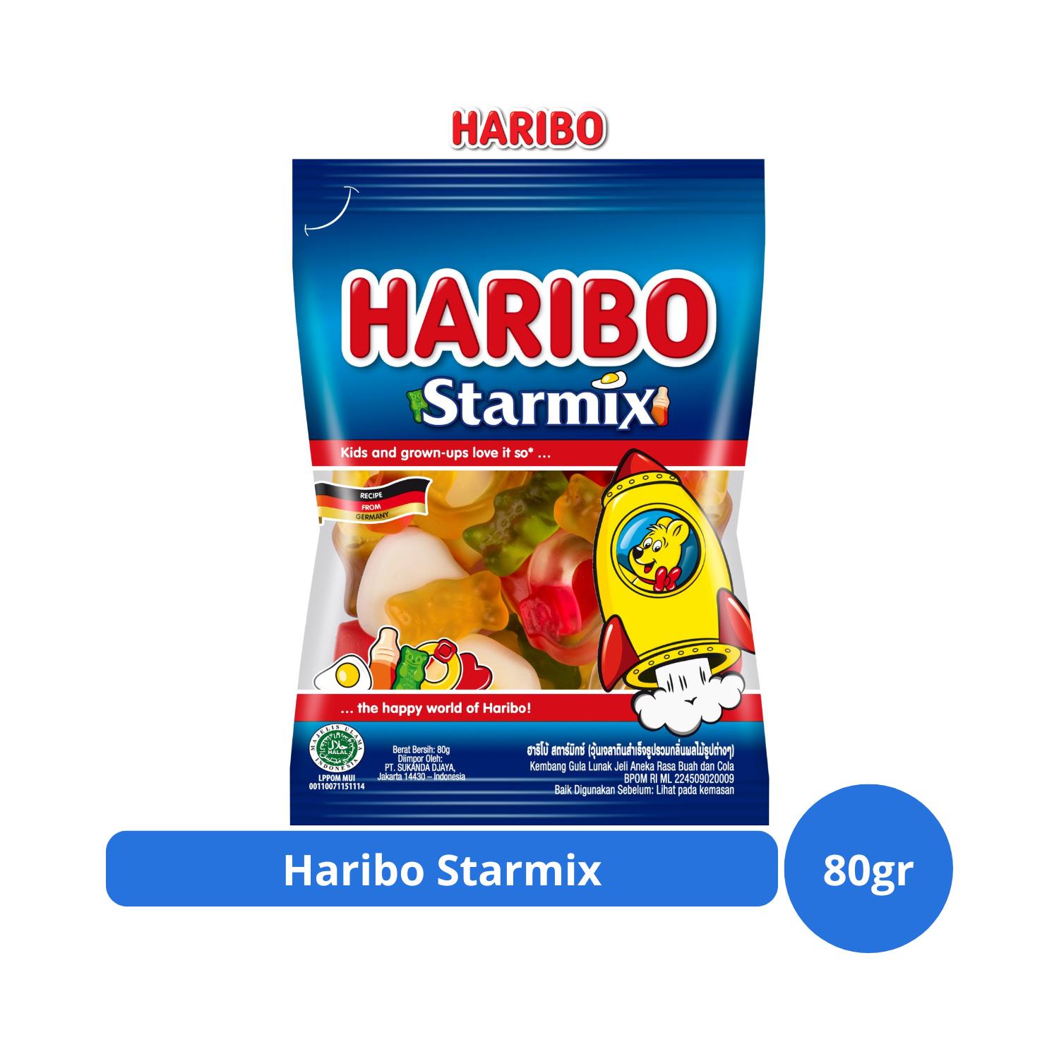 Permen gummy dengan bentuk yang unik dan warna yang menarik. Walaupun begitu, Haribo Starmix tidak menggunakan pewarna buatan. Haribo Starmix ini berisi berbagai bentuk menarik dan rasa yang unik, pastinya sangat disukai anak-anak.