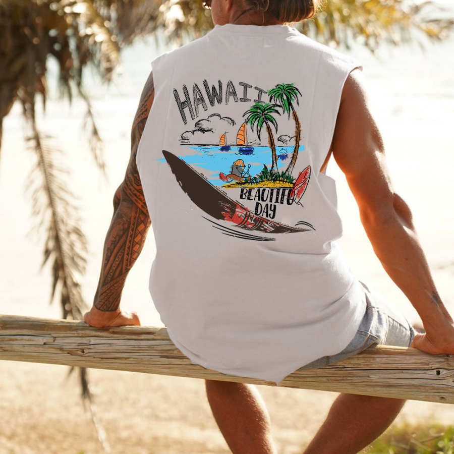 Hawaii Beautiful Day Beach Print Men's Tank Top