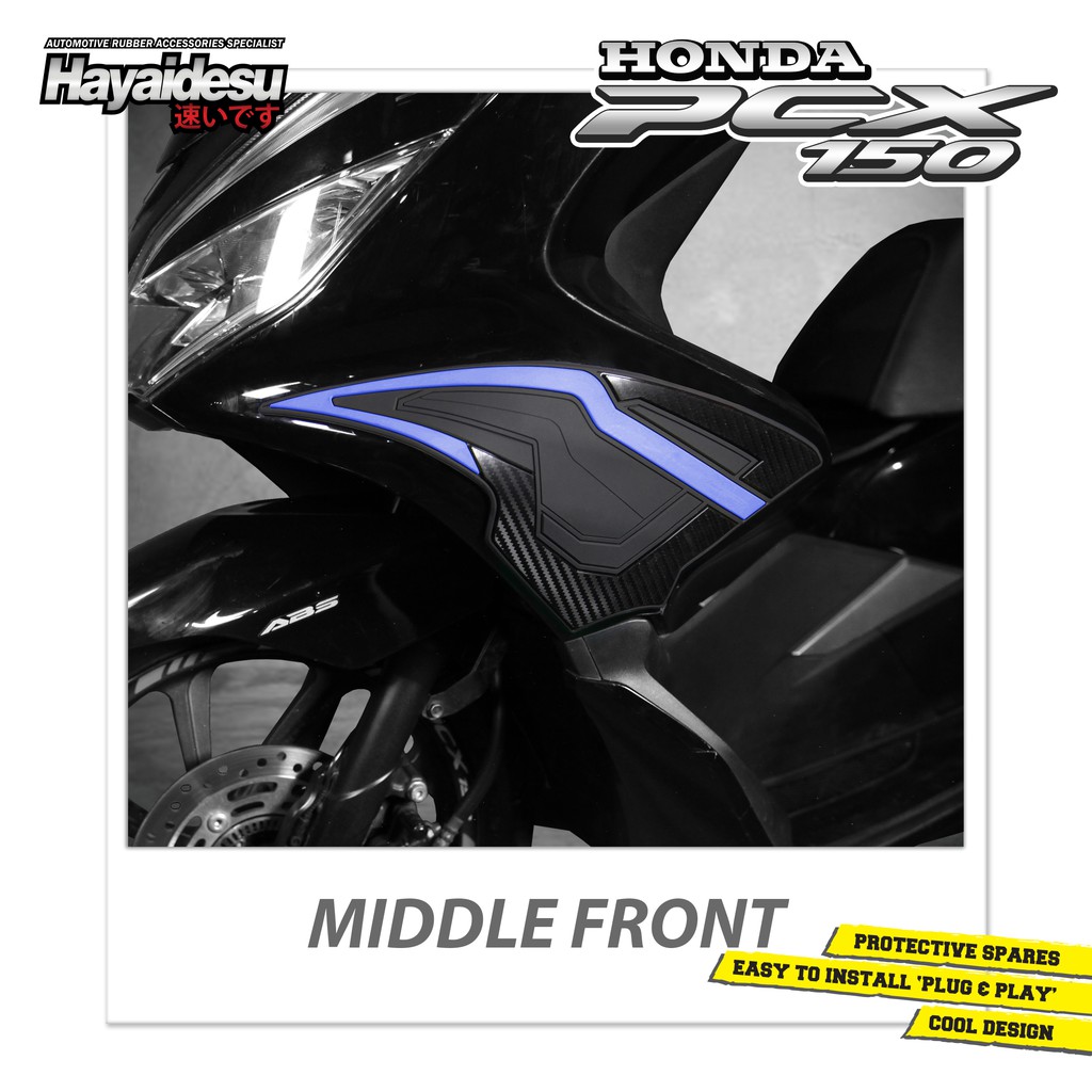 BARANG READY TERUS !HARGA TERTERA ADALAH HARGA UNTUK SEPASANG KANAN DAN KIRIHayaidesu PCX Middle Front Cover (Kiri-Kanan) merupakan body protector terbuat dari material rubber kualitas Jepang yang khusus dirancang untuk motor PCX Anda dengan fungsi untuk melindungi PCX Anda dari lecet akibat benturan. sekaligus meningkatkan penampilan motor PCX Anda menjadi lebih stylish & sporty dengan design warna doff dan tampilan motif karbon yang mewahSpesifikasi:Item: Hayaidesu PCX Middle Front Cover (Kiri Kanan)Material: Flexible RubberQuality: Japan Quality RubberLainnya: Sudah Termasuk Double Tape 3M VHBJapan QualityTahan LamaHigh TechnologyPresisiLem Kualitas JapanSporty & Premium ClassTersedia Warna:Black-blue (Hitam-Biru)black-yellow (Hitam-Kuning)black-red (Hitam-Merah)black-grey (Hitam-Abu abu)All Black (Hitam-Hitam)Tulis pilihan warna dalam catatan pembelian!Catatan Penjual :Pelanggan Hayaidesu yang kami hormati, kami berusaha untuk memberikan Anda kepuasan terhadap produk dan pelayanan kami, sebelum berbelanja mohon bantu kami untuk memperhatikan aturan proses pesanan dan pengiriman: PEMESANAN 1. Proses PEMESANAN hanya dilakukan pada hari kerja (Senin-Jumat). 2. Pesanan yang diterima hari SABTU & MINGGU tetap akan di proses untuk pengiriman hari SENIN, dan pesanan yang diterima hari LIBUR tetap akan di proses untuk pengiriman hari berikutnya. 3. Pesanan yang masuk SETELAH pukul 16.00 akan dikirim pada HARI BERIKUTNYA. 4. Produk yang akan dikirim adalah produk yang tertera pada label pesanan. Jika salah memesan jenis produk mohon untuk cancel pemesanan dan mengganti dengan pesanan baru. 5. Mohon cantumkan pilihan warna atau tipe pada catatan pembeli ketika melakukan pesanan, seandainya tidak ada catatan maka akan dikirimkan secara random. PENGIRIMAN 1. Proses PENGIRIMAN hanya dilakukan pada hari kerja (Senin-Jumat) 2. TIDAK ADA PENGIRIMAN pada hari SABTU-MINGGU dan HARI LIBUR NASIONAL. 3. Durasi pengiriman tergantung dari pengiriman yang dipilih, lokasi dan kondisi cuaca 4. Apabila barang sudah terkirim, maka tanggungjawab sudah berada pada pihak jasa pengirimannya 5. Jika terjadi kendala pengiriman mohon untuk menghubungi jasa pengiriman terlebih dahulu sebelum menghubungi kami. Terima kasihMohon Diperhatikan Catatan Pelapak ini sebelum berbelanja, Terima KasihSelamat datang dan Selamat Berbelanja ! :)