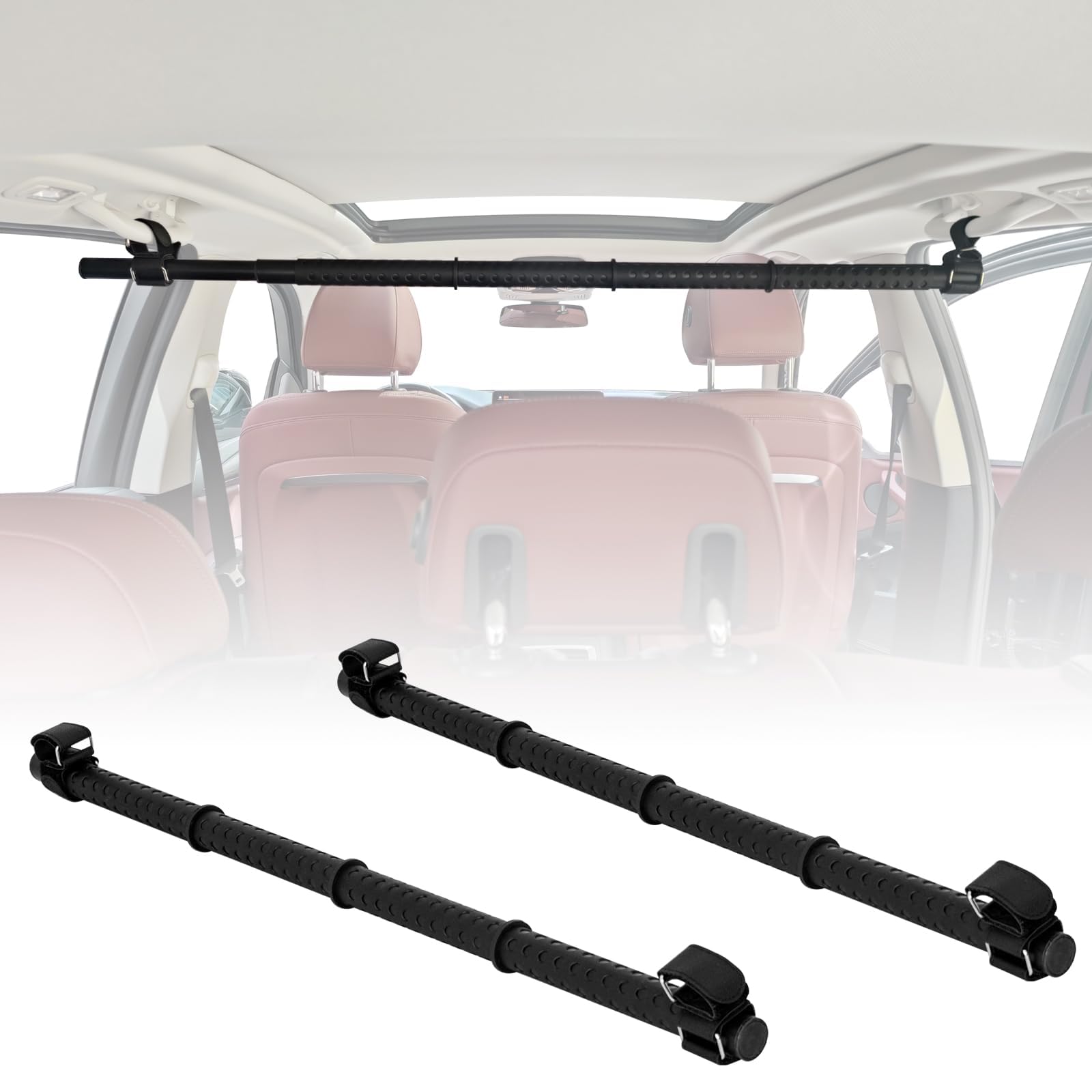 HeGeed Вешалка для автомобиля Регулируемое натяжение Без инструментов Легкая Внутренняя Телескопическая Одежда Автомобиль Подходит для Рыбалки и Палаток Штанга, Штанга с несколькими захватами, Длина, 83см-156см, чёрный