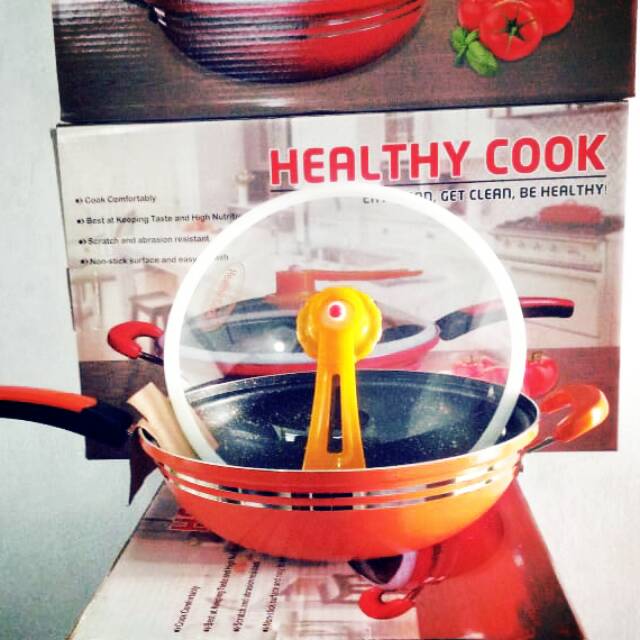 PANCI HEALTHY COOK 32 CM bisa digunakan untuk penggorengan ( anti lengket ) hanya dengan seoles minyak dan pada saat ditutup maka panci ini bisa sekaligus digunakan untuk melunak kan daging fast cooker seperti Presto .