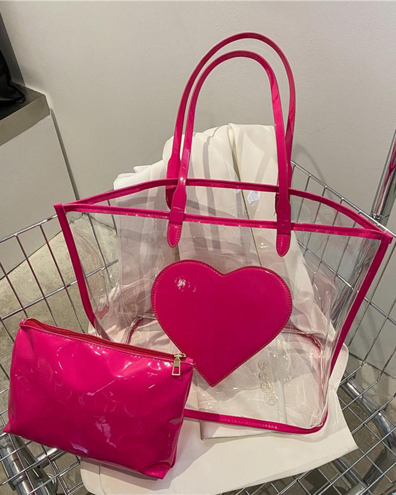 Heart Pattern Large Capacity Tote Bag With Inner Pouch, Pink