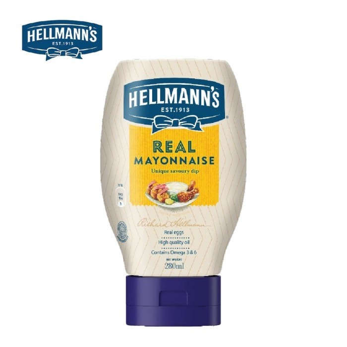 Hellmann’s Real Mayonnaise adalah mayonais nomor 1 di dunia dan bumbu ideal untuk dioleskan pada sandwich dan wraps, memanggang burger, mencampurkan dengan bumbu lain, dan menyiapkan salad segar. Dengan formula yang disempurnakan sejak 1913, Real Mayonnaise mengandung minyak kedelai berkualitas tinggi, telur asli dengan Omega 3&6, dan jus lemon yang menghasilkan rasa mayonnaise lembut dan gurih untuk menemani hidangan favorit keluarga Anda. Gunakan Hellmann's sebagai bahan untuk mengubah barbekyu dan makan malam sehari-hari Anda menjadi makanan yang lebih segar dan lebih lezat.