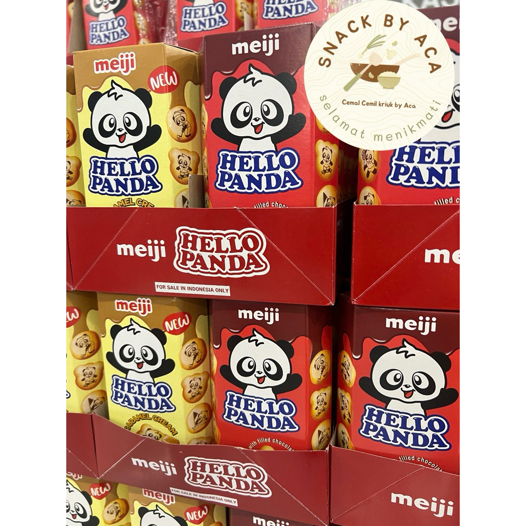 Hello Panda 42g adalah biskuit isi krim dengan bentuk panda yang lucu, sangat populer sebagai camilan. Biskuit ini renyah dan diisi dengan krim vanilla atau rasa lain seperti stroberi dan cokelat,